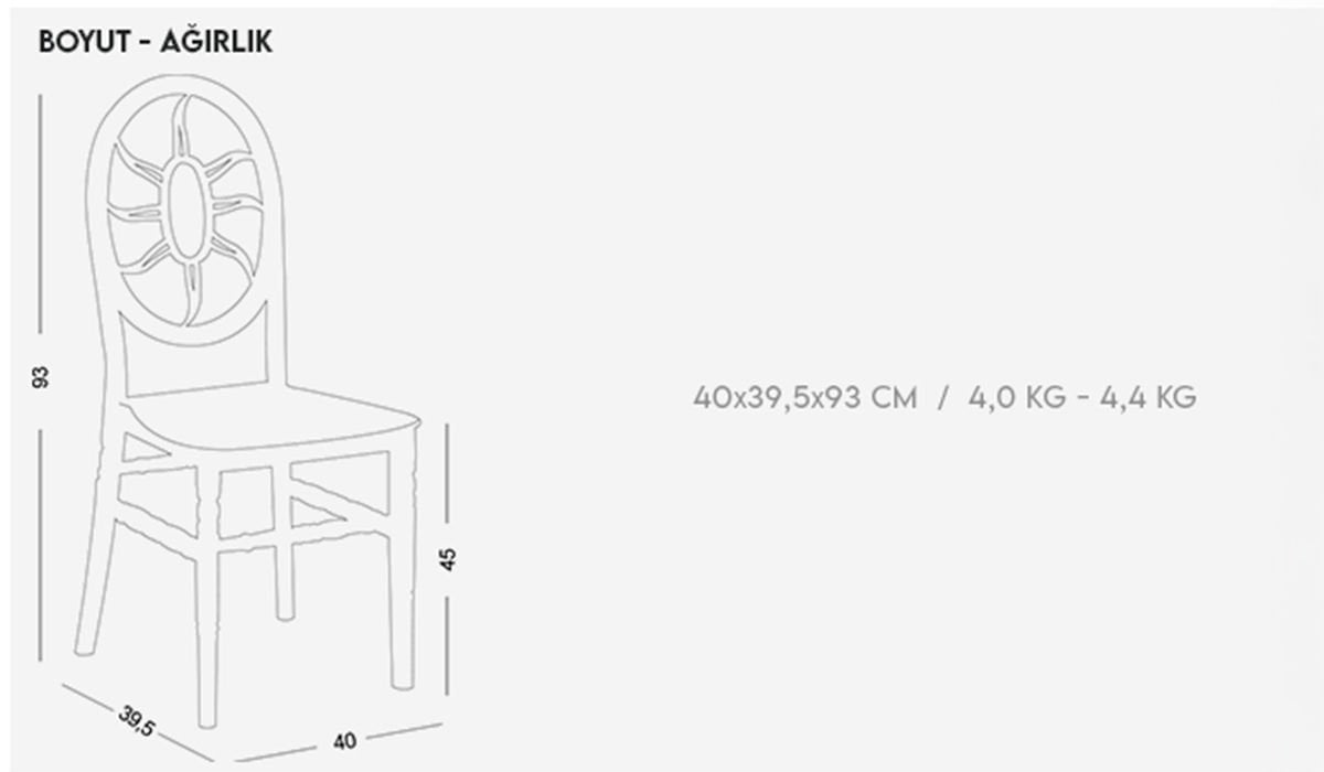 | Sandalye | 40 cm | 93 cm | 39,5 cm |