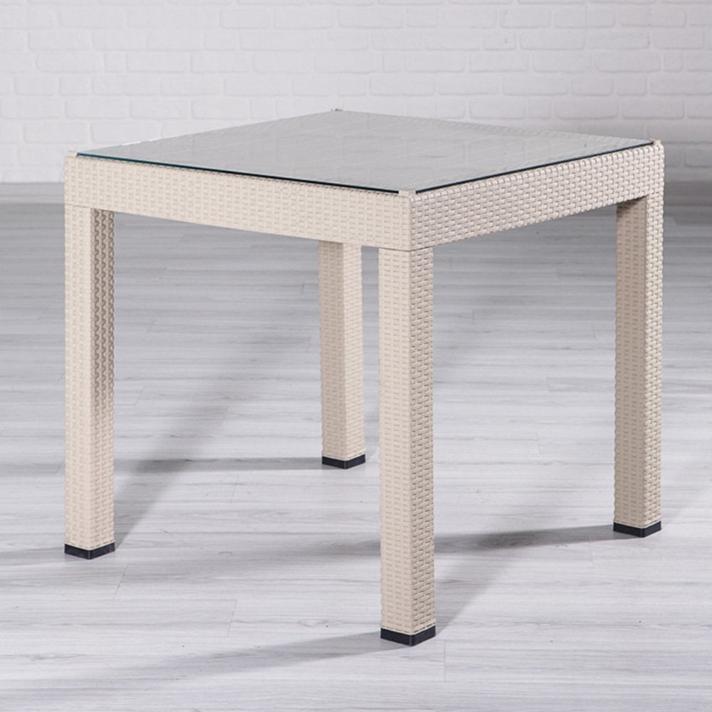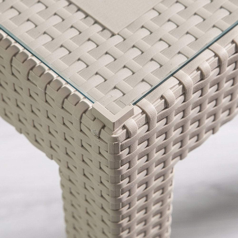 Rattan Small Camlı Masa Seti - Cappucino